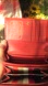 Elegant red leather wallet. Features multiple card slots. Vibrant interior with various colors. y2k