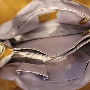 GUC almost vintage 2009 Coach off white leather sachel with light tan trim, chain detail, oversized turn lock and original oversized hangtag. This one screams early 2000's. Not in perfect condition, but very good given her age and the fact that she is a light color. The cream leather has some signs of wear, although minimal(mainly on the back). Love the 2009 details on this one and the leather is butter soft. The trim on the sides has some wear and all is pictured. Large 3 section, spotless lavender interior features 2 large zipper pockets, 2 slip pockets. The interior has been cleaned as well as the leather has also been cleaned and conditioned. Almost kept this one, but I have to many.....she is ready for her new home.