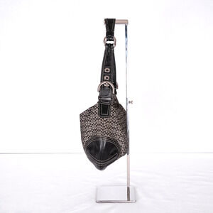 Coach Y2K Signature Hobo Shoulder Bag Small C Logo Gray w/ Black Leather F02158