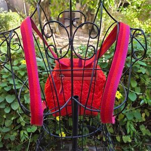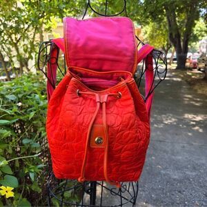 Coach Y2K Signature Quilted Drawstring Coral Mini Vintage Backpack. Nylon, Leather, Suede. #5164