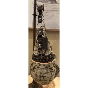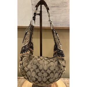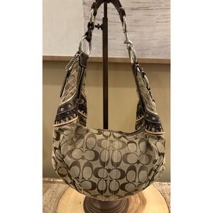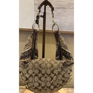 Coach Y2K Vintage Signature Jaquard & Leather Crescent Hobo 10611 Brown & Tan