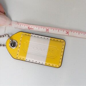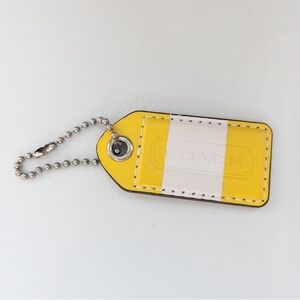 Coach Yellow and White Leather Key Fob Tag Chain Charm