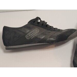 Coach Yolanda Black Suede Canvas Sneakers Womens Sz 7 Comfortable Fashion