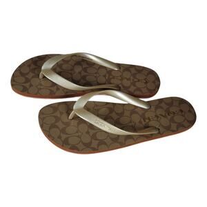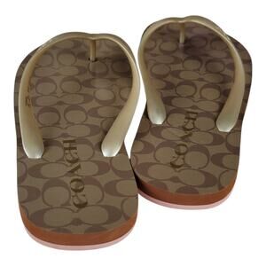 Coach Zak Signature Flip Flop Sandals Khaki Gold Women's Size 11B US