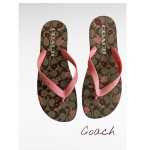 Keywords: Coach, flip flops, sandals, floral, signature print, summer shoes, beach shoes,
