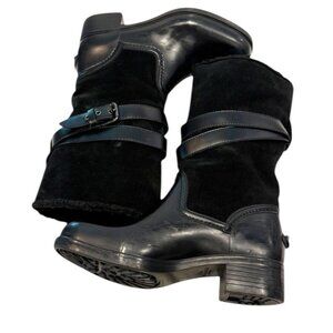 Coach Zena Black Leather Shearling Rubber Winter Cold Weather Snow Boots Size 8B