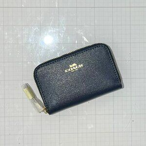 Coach Zip Around Card Coin Purse Wallet Navy Micro Holder Crossgrain Leather SLG