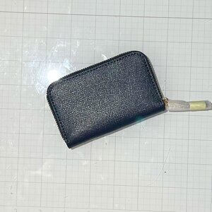 Coach card and coin purse with gold lettering and zipper. Textured leather with a zipper pull closure. The coin purse is a small, compact accessory designed to hold coins, cards, and other small items. Inside multifunctional pockets. New with original packaging and tag.