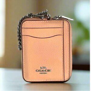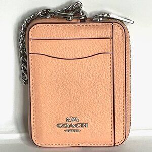 Coach Zip Card Case ID Mini Wallet 6303 Pebbled Leather Chain Strap Blush Silver