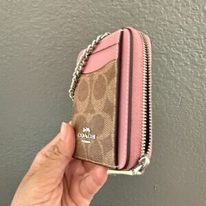 Coach Zip Card Case In Signature Canvas CW883 Tan/Dusty Pink