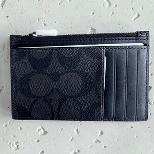 Coach Zip Card Case In Signature Canvas Gunmetal/Black
