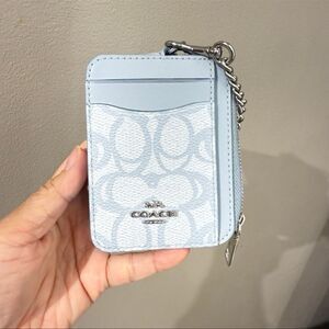 Coach Zip Card Case In Sketch Signature Canvas CBL78 Ice Blue