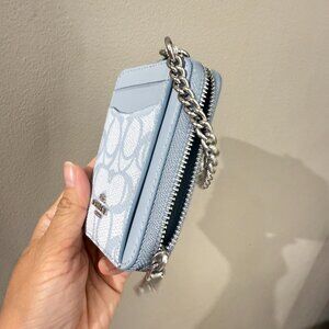 Coach Zip Card Case In Sketch Signature Canvas CBL78, Silver/Ice Blue