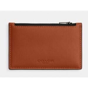Coach Zip Card Case Smooth Leather-Gunmetal-Tan NWT