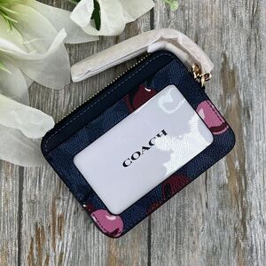 Coach Zip Card Case In Signature Canvas With Cherry Print Wallet Bag Purse