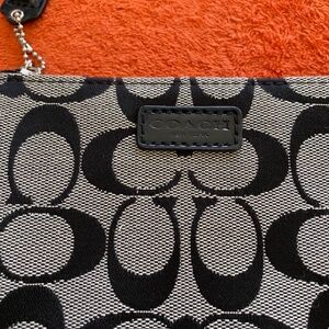 Coach Zip top wristlet 6"x 4.5" Black and grey logo. Looks new