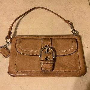 Beautiful used Coach Wristlet 4 x 8 approximately used condition . Everything is in great working condition. I think this is a limited edition. Leather is quality. Believe it is called Whiskey in color.