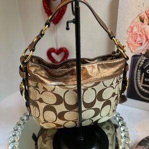 Stylish Coach women's bag in a chic brown and tan design. Perfect for any occasion.