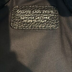 1 Coach and Four leather hang tag stamped in silver foil on leather strap