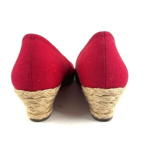 Coach and Four Louise Espadrille Wedge 7 Red Canvas Peep Toe Shoe Womens