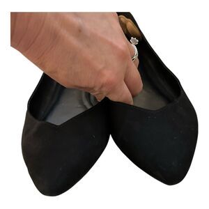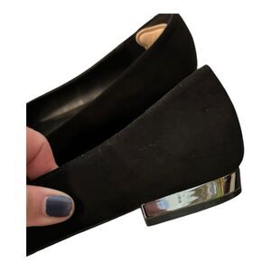 Coach and Four Mirrored Heel Black Suede Pointed Toe Flats Sz 9