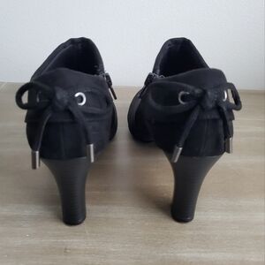Coach An Four Shoes Womans cuffed ankle booties with zipper in the side. The Astra bow detail makes for a feminine sophisticated look dressing up any outfit. Features round toe, 2 3/4" heels.