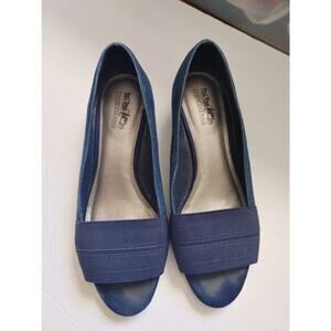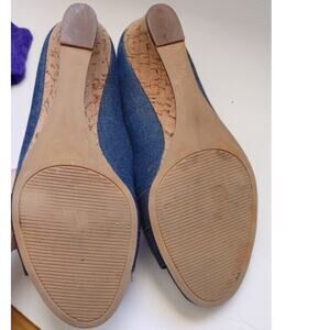 Coach and Four Wedge Espadrilles Open Toe Navy Blue Denim Look Sz 8