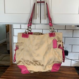 Coach signature authentic khaki and fushsia purse