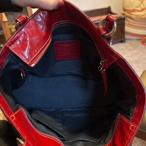 Coach authentic red patent leather tote F13761 pleated gallery bag