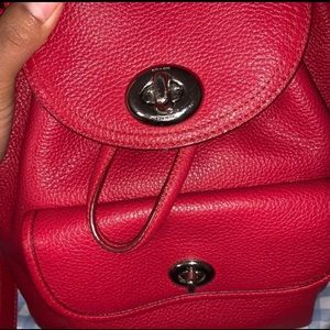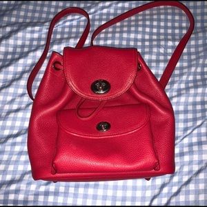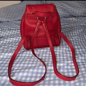 RARE. Coach drawstring backpack mini in beautiful red. You cannot find it anymore on coach sites. It’s not vintage. I got it in March 2019. Not too small at all as its name is. Totally fits all the necessaries that you need. No odor and clean interior and exterior. Condition is 9.5/10. Paid 150 something. *Designer tags for more exposure.*