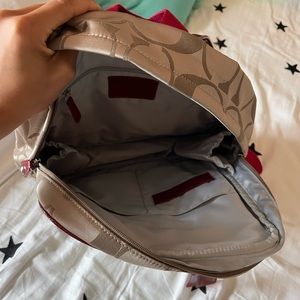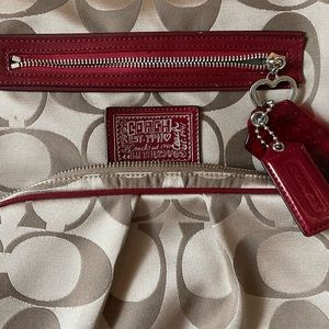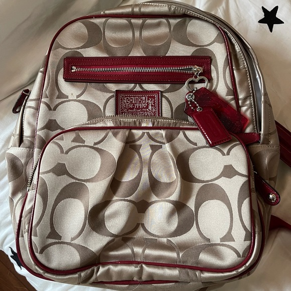 @tiffanyander659 the fabric is a champagne and the hardware is a cherry red