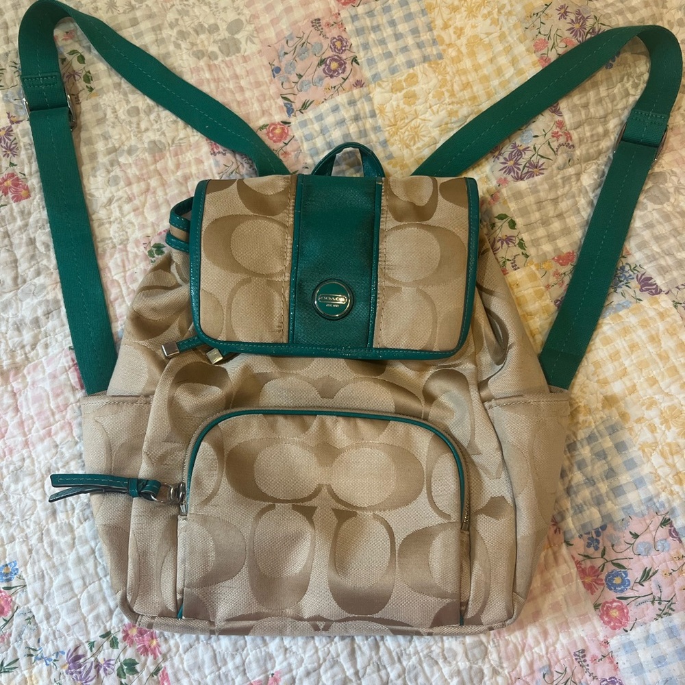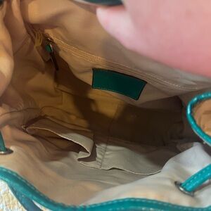 Small backpack with draw string! A few minor stains seen in pics, besides that no other damages to leather and zippers!
