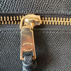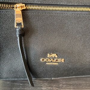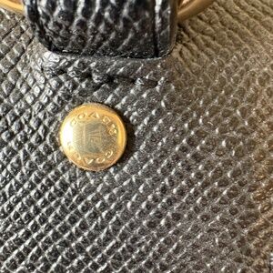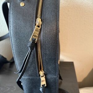 Black, leather, Coach backpack with original pocket card.