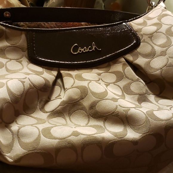 Signature bag with brown trim. Silver hardware. Excellent condition