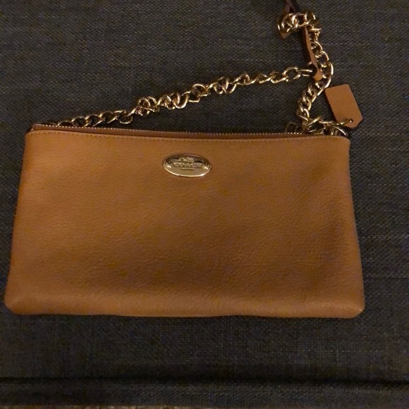 Beautiful brown leather designer coach cross body bag. Perfect for a night out on the town! Great size for your essentials inside! Also, strap is adjustable.
