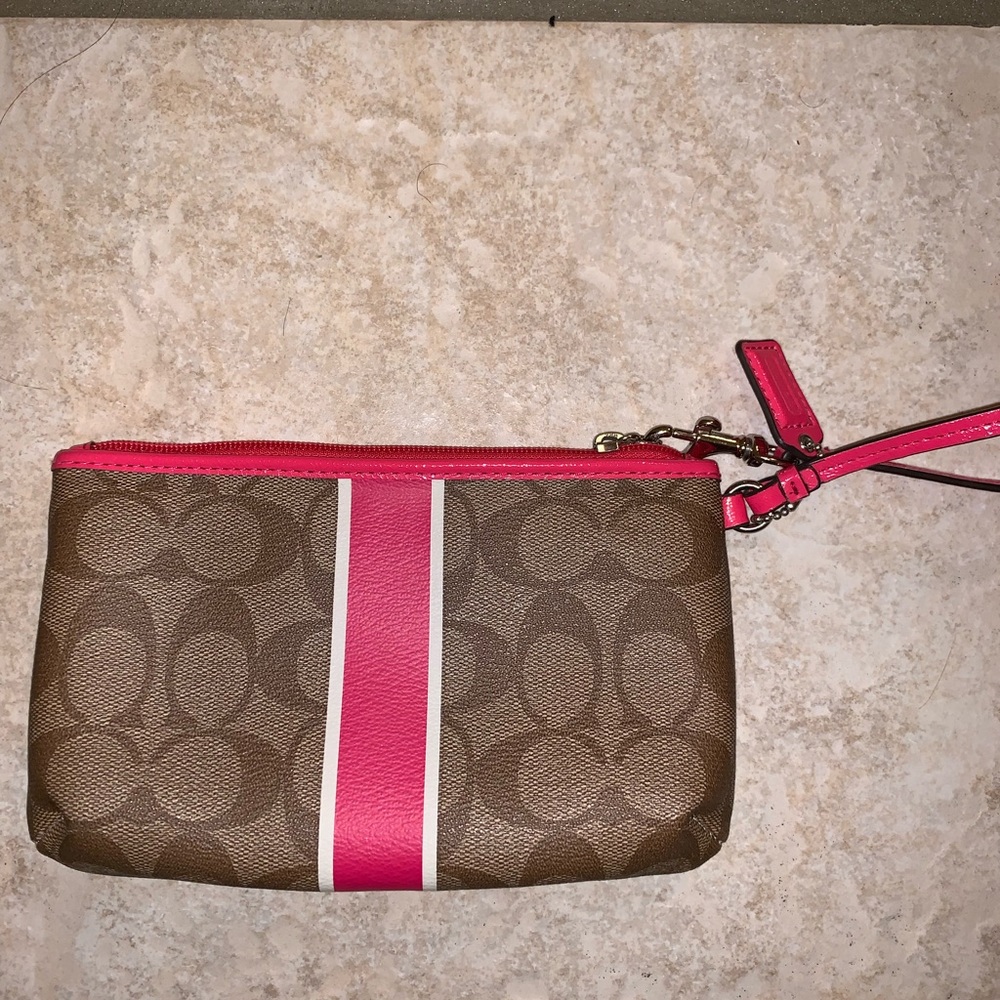 Coach bag wristlet//pink stripe//like new
