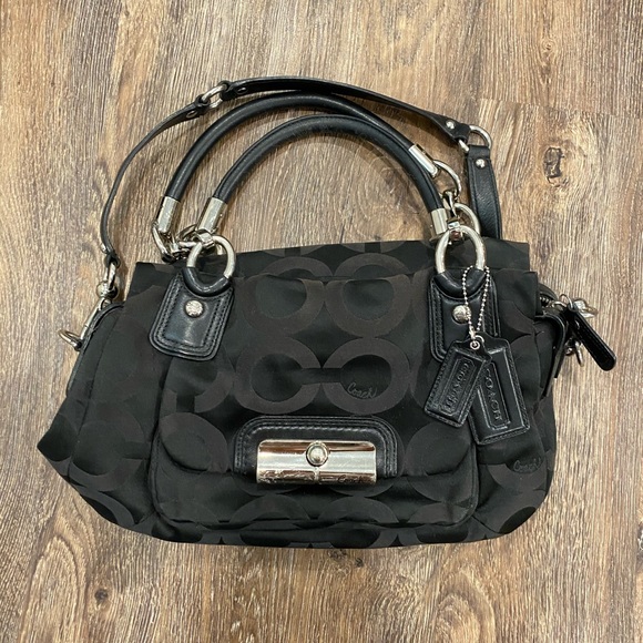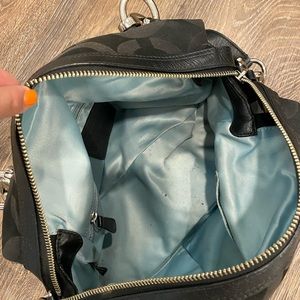 Adorable black coach bag with baby blue interior and plenty of love left to give it! Just needs minimal cleaning and it’ll look almost new! Does have dust bag. 🤩
