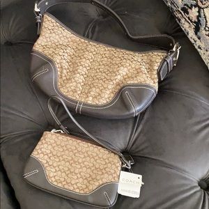 Brown leather with canvas shoulder bag with free matching wallet. Never used wallet