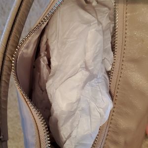Received at a charity auction, but did not have tags attached. Looks new/unused. Tan with darker tan trim and snake skin in front buckle, zipper pull, and corners.