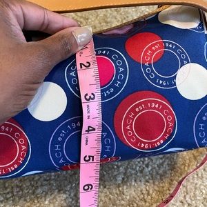 Coach bag comes with a cute little 100% silk scarf that you can wear as a headband or use as a purse accessory.