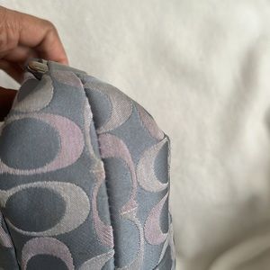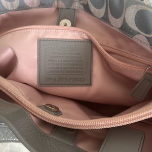 It is a pink and grey coach bag. It is a used bag minimal use see photos.