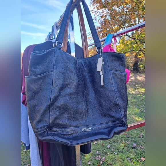 Leather coach purse with emerald green inside. Some small flaws around the straps but sill in great condition! Open to offers but please no lowball offers. Thank you ๐