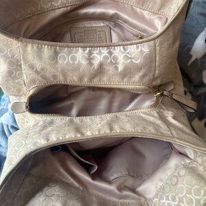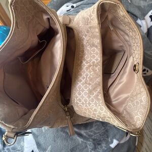 Tan Coach bag. Gently used with small areas of stain from normal use. Storage bag included.