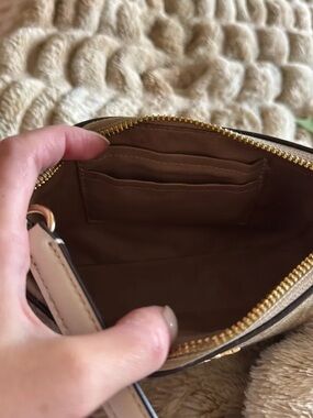 Worn, looks pretty much new except it has a little ripping on the black part of the strap. This could probably be fixed with some super glue.