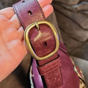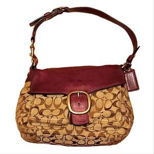 Coach bag signature coach leather canvas flap buckle good preowned condition