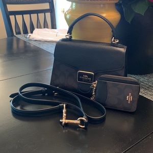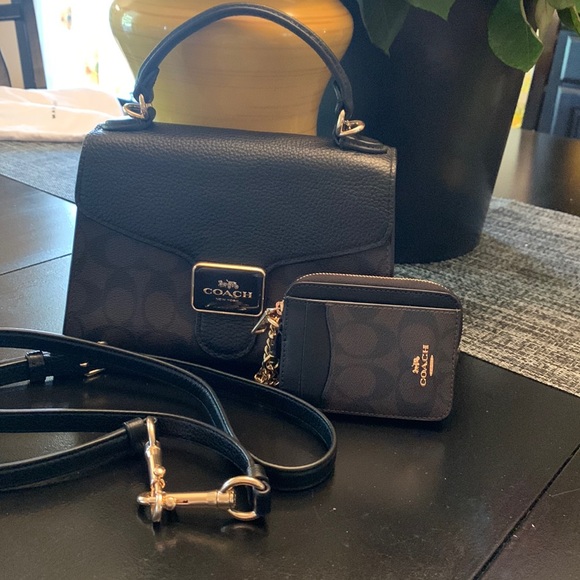 Coach black and brown crossbody with handle