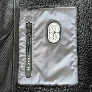 NWOT Coach XL black men's jacket with white C logo on front. Shell and lining is 100% polyester. Purchased for my husband who never wore it!