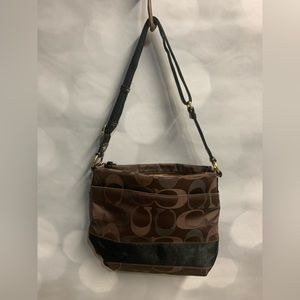 Coach brown and black jacquard shoulder bag with CoA. This bag is beautiful and comes with a certificate of authenticity. The strap is adjustable