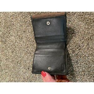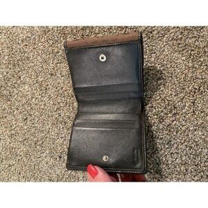 coach brown leatherware c trifold wallet est1 941brown fabric with brown Leather Nickel Hardware