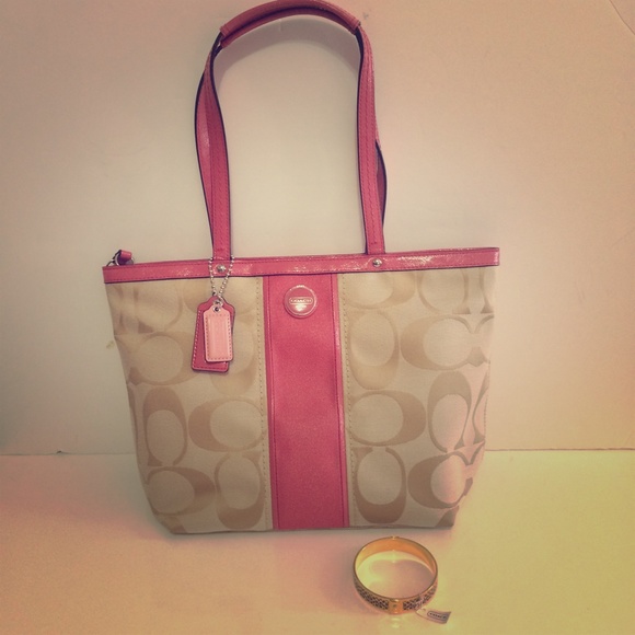 The handbag is in like new condition. It has only been worn once and the purple bangle still has its tag.